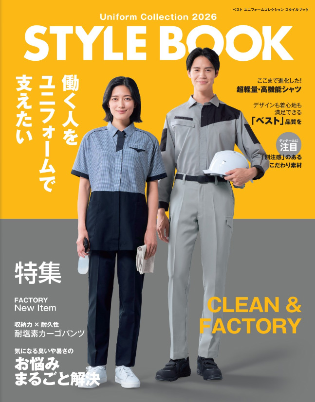 STYLE BOOK uniform collection 2026 デジタルカタログ 総合ユニフォーム「BEST」 作業環境や業務内容、企業の目指すイメージなどに対応したワークユニフォーム。男女ペアや年間を通じてコーディネイトできるデザイン・カラー共にバラエティーに富んだラインナップです。 ジャンル:清掃メーカー:ベスト